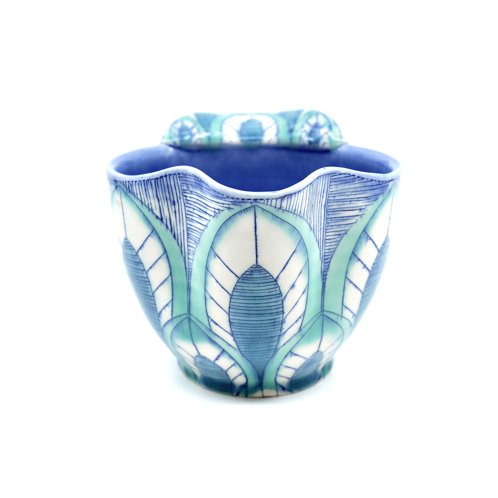 Blue underglaze inlay.